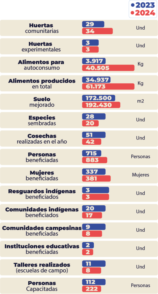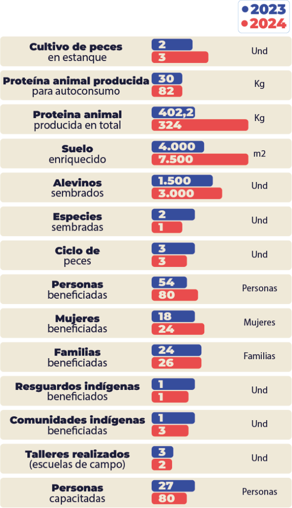 La soberanía y seguridad alimentaria representan un pilar esencial dentro de nuestra gestión social, por lo que impulsamos iniciativas que garantizan el acceso a alimentos nutritivos y fomentan la autonomía productiva de las comunidades indígenas y campesinas. A través de proyectos agrícolas, pecuarios y piscícolas, promovemos el fortalecimiento de prácticas tradicionales de cultivo y cría, complementadas con conocimientos técnicos modernos que permiten mejorar la productividad, la sostenibilidad y el bienestar de las familias beneficiarias.